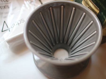 KINTO陶瓷濾杯是圓錐形,底部是大的單孔出水孔,而杯壁有直通到底的16道導水溝槽,上細下粗,加上杯身的傾斜角度,三者搭配共同調節了水流的速度。